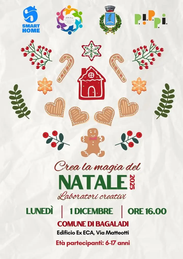 Comune di Bagaladi e Ambito Territoriale Sociale N.4- Capofila Melito di Porto Salvo, in collaborazione con gli operatori del Progetto P.I.P.P.I., del Centro per la famiglia e i Volontari del Servizio Civile Universale, invitano grandi e piccini a partecipare al laboratorio creativo natalizio lunedì